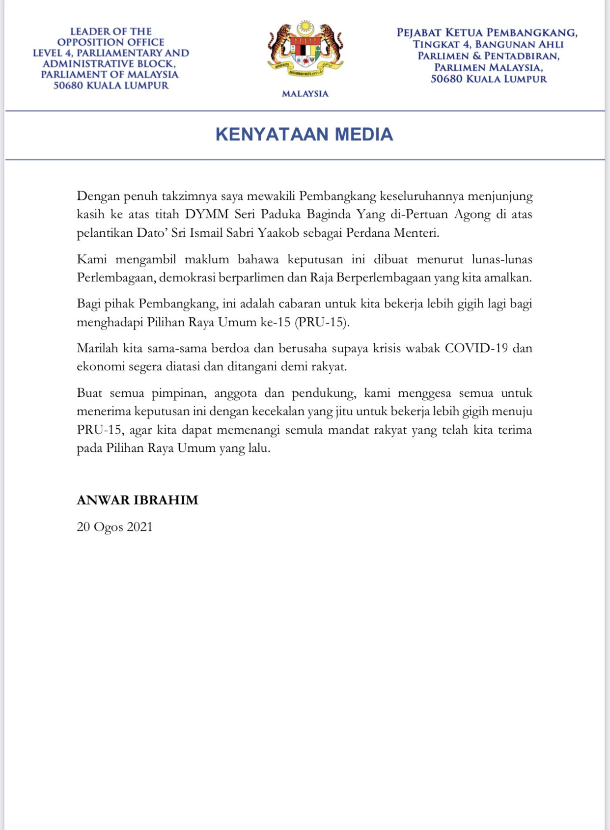 Melissa Goh On Twitter All S Not Lost Opposition Parliamentary Chief Anwar Ibrahim Urged Opposition Mps To Accept The Appointment Of Ismail Sabri As Pm9 In The Right Spirit Tenacity Ge15 Is